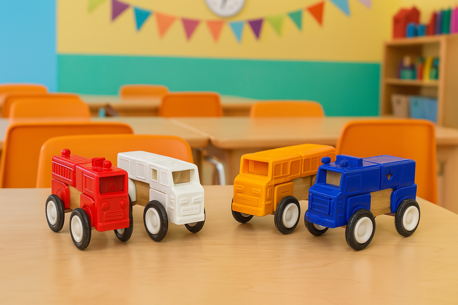 1、產品簡介:由4輛車輛組成,每輛車包含一塊木質積木。